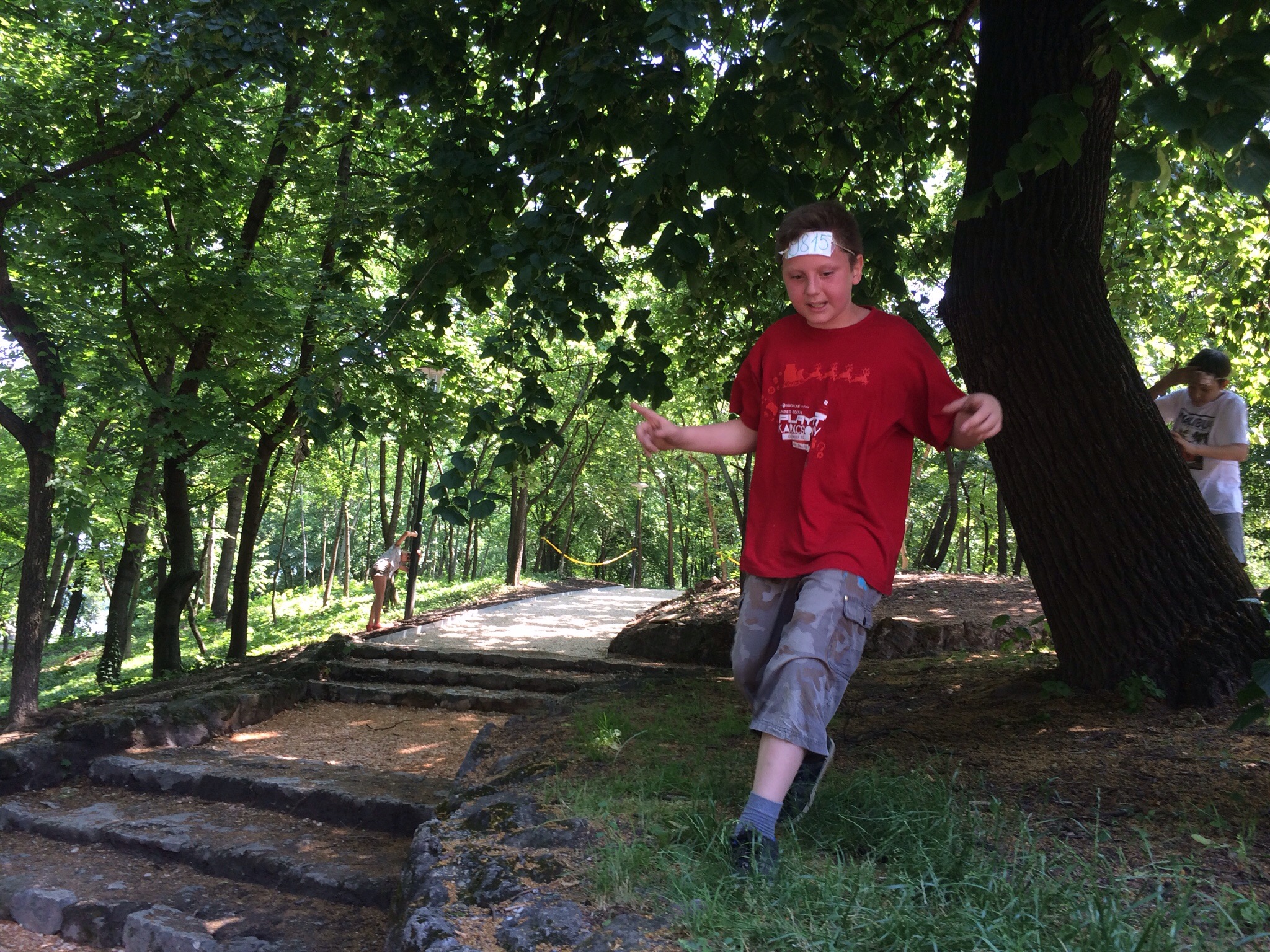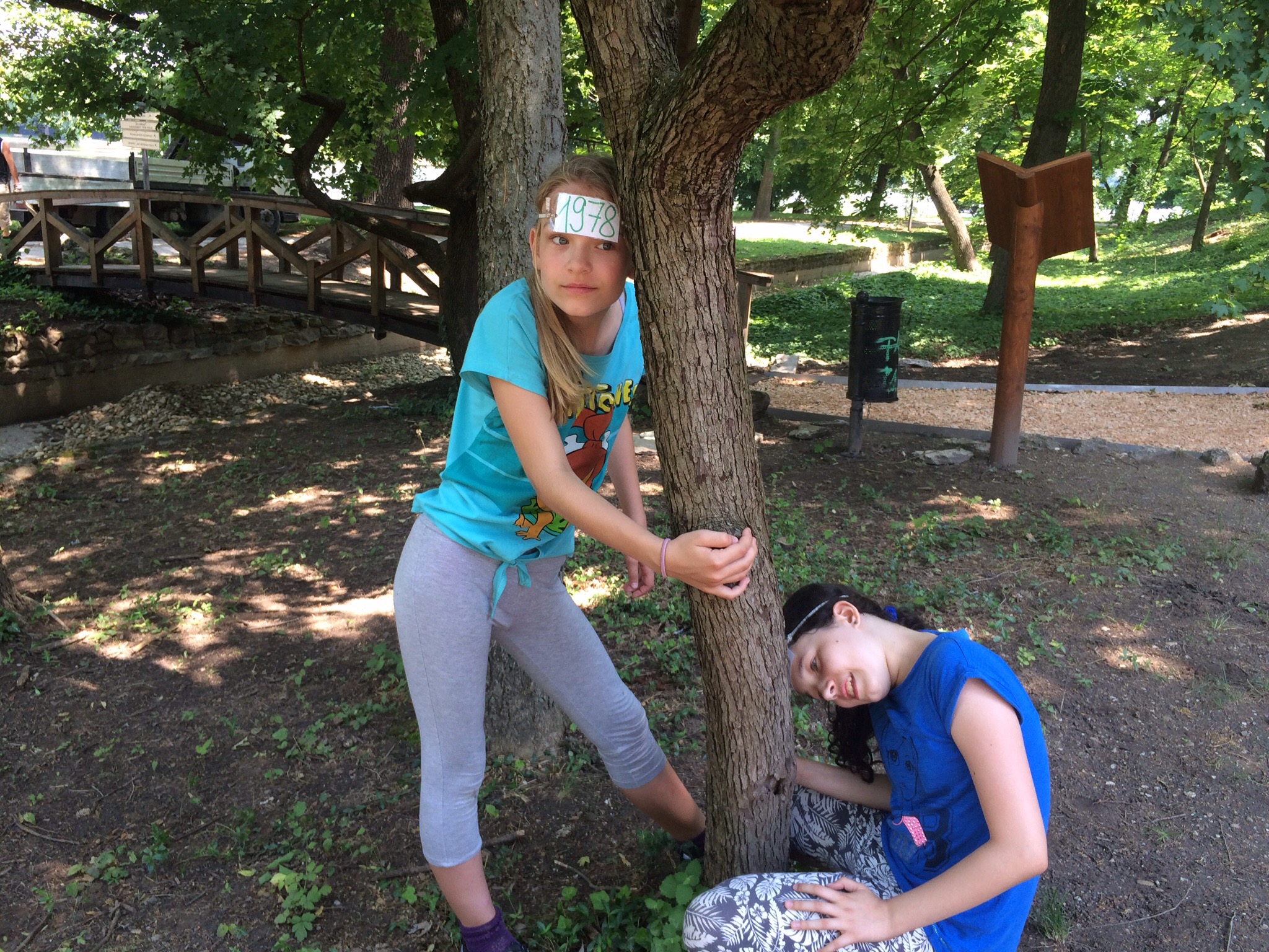 We walked to the English Gardens near the lake. There they again climbed all over old, probably important, ruins. They then begged me to play Number War. This is a game where everyone wears a number on their forehead, such as 1789. You can’t let the other team identify your number. If someone from the other team calls out your number, you are out. You thus have to run around while covering your forehead on tree trunks, walls, etc.