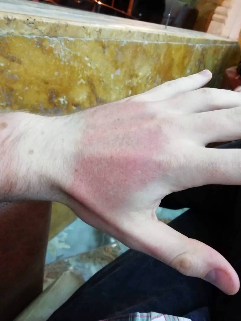 Another vivid memory is getting terribly sunburnt on our last day in Petra. There isn’t much shade at all in the treeless desert, but we didn’t mind as the March weather that day was cool and breezy, 12°C / 53° F. But the UV index was incredibly high, and we made the mistake of eating lunch right in the sunshine, essentially allowing ourselves to bake. When we got back to our hotel, we discovered that we were both extremely sunburnt — my left hand was so burnt it continued to swell up well into the night!