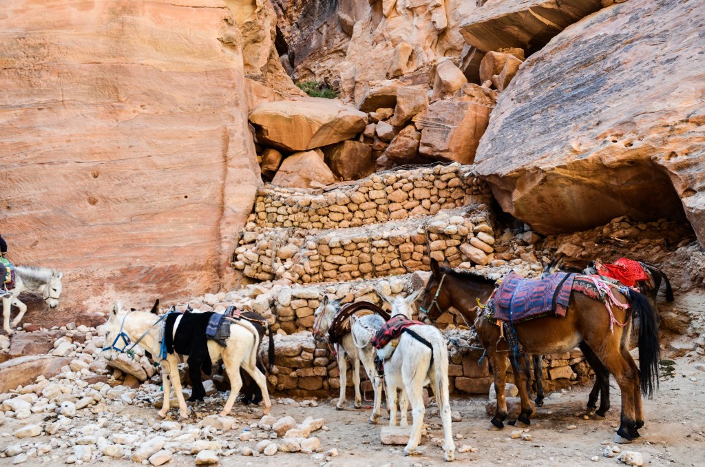 One of the most enduring memories of our trip is the treatment of animals in Petra. I’ll never forget seeing children kicking and whipping their donkeys, and overworked horses and camels bearing the painful load of fat, western tourists. There are plenty of things to see in Petra without having to walk far — anyone visiting Petra should try to see it without burdening an animal whose life is already hard.