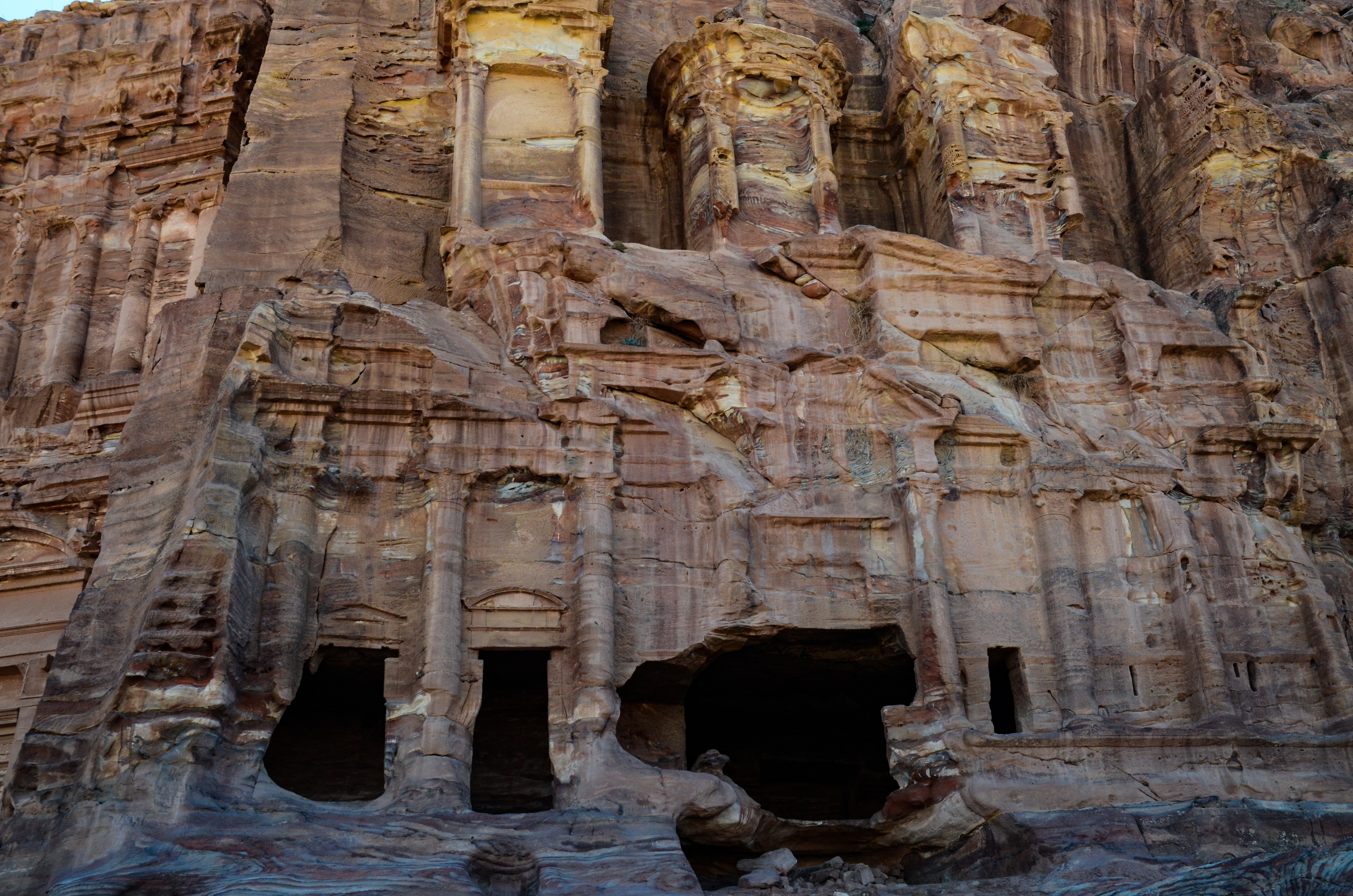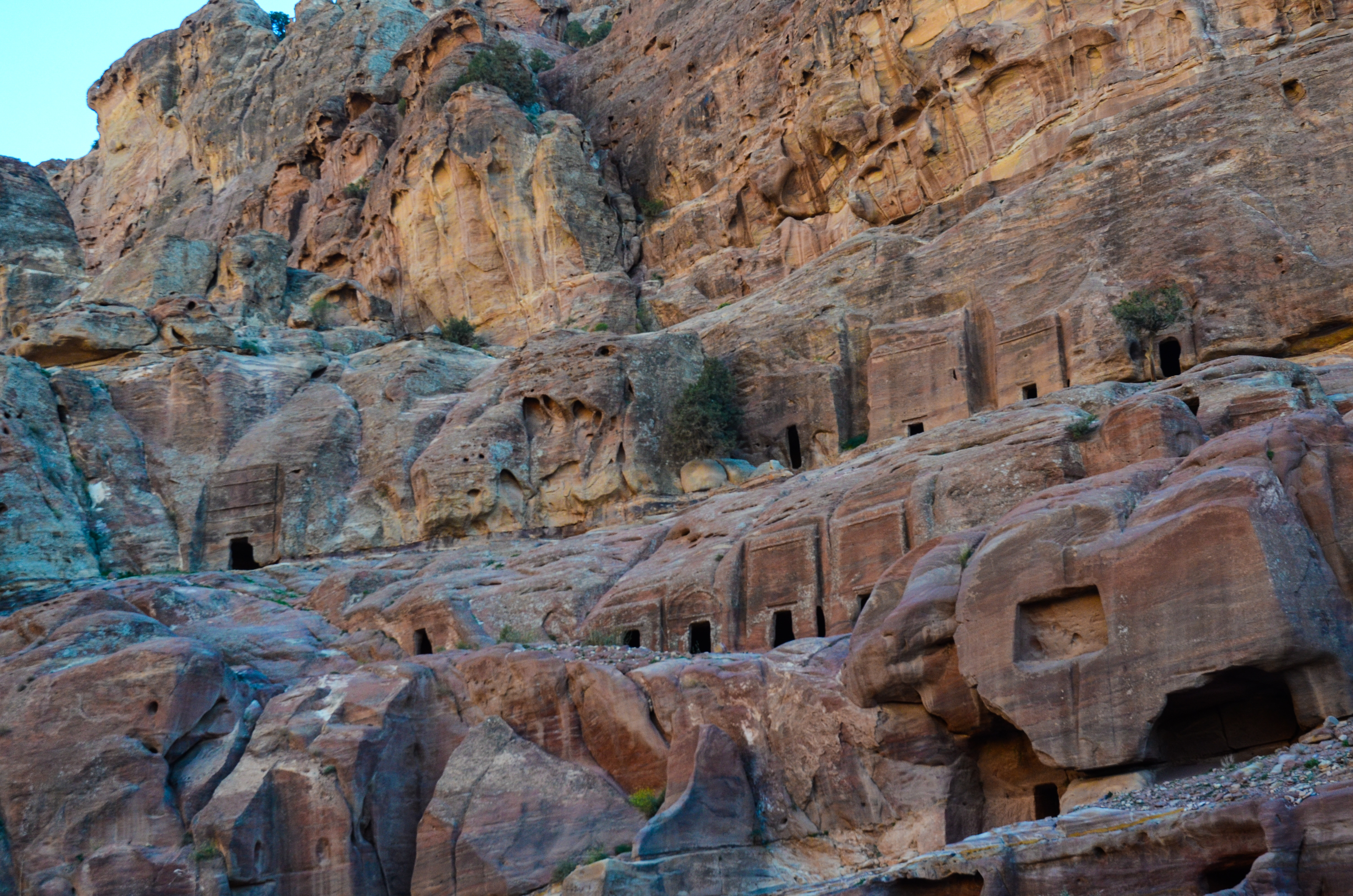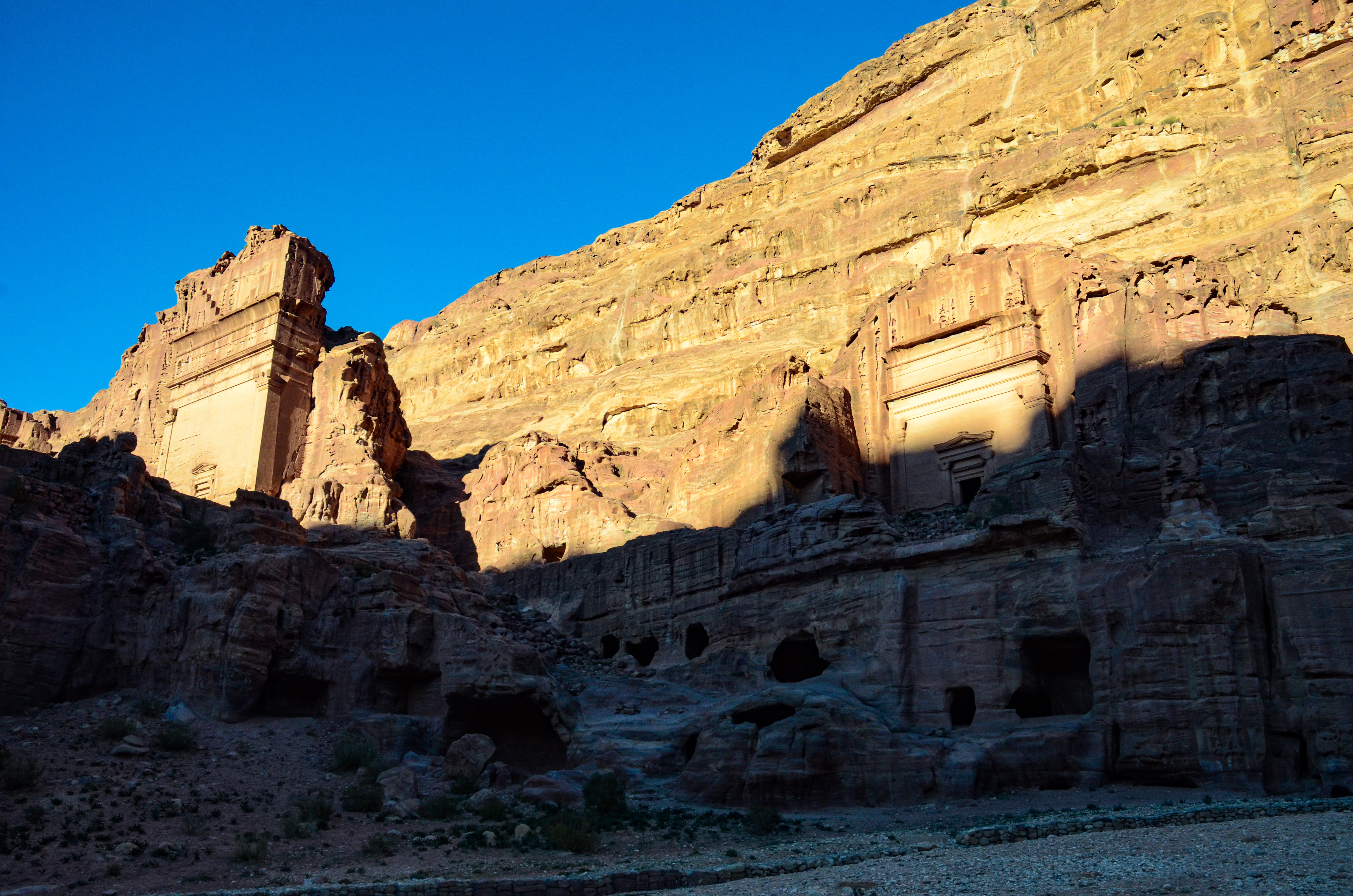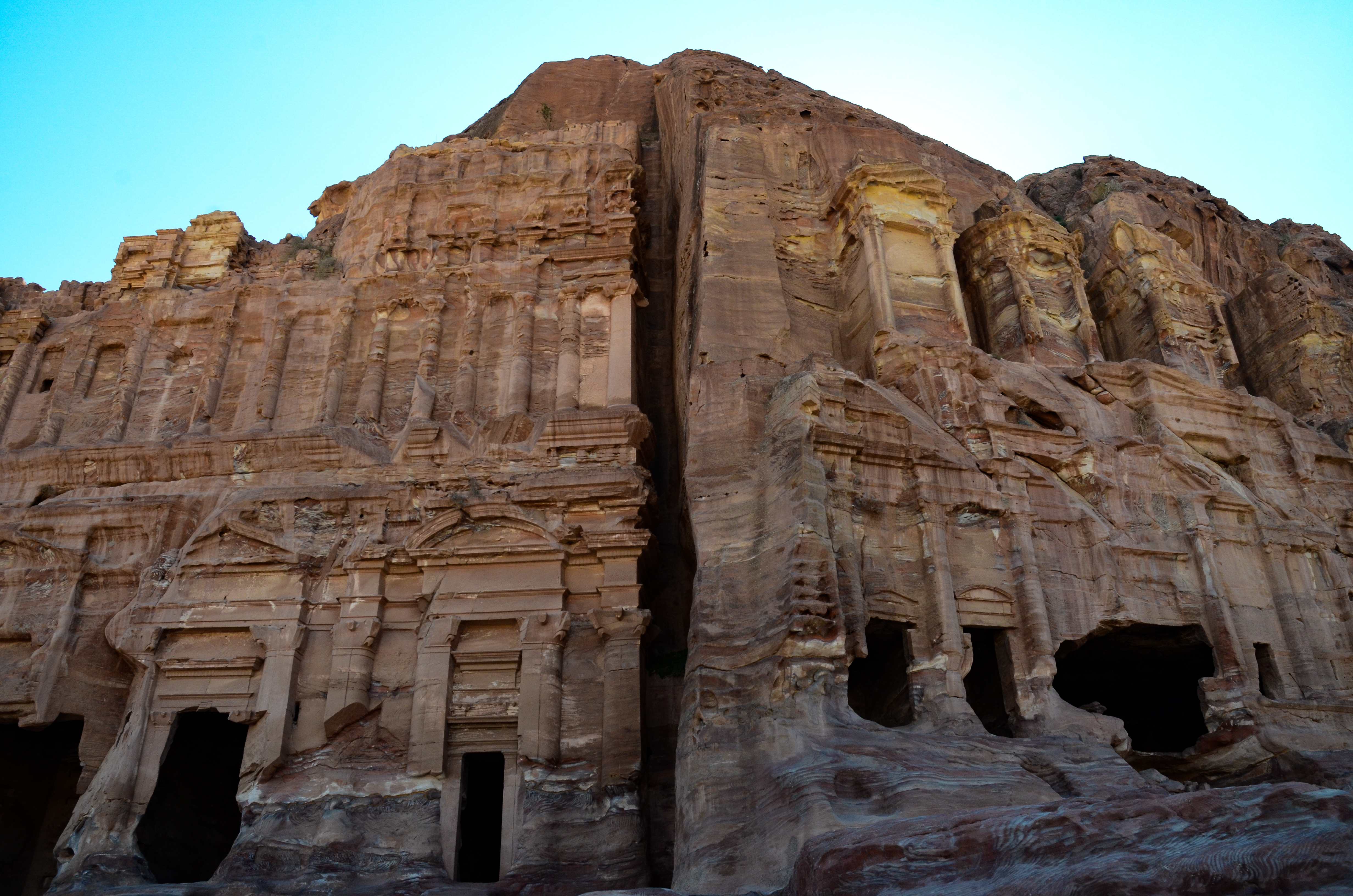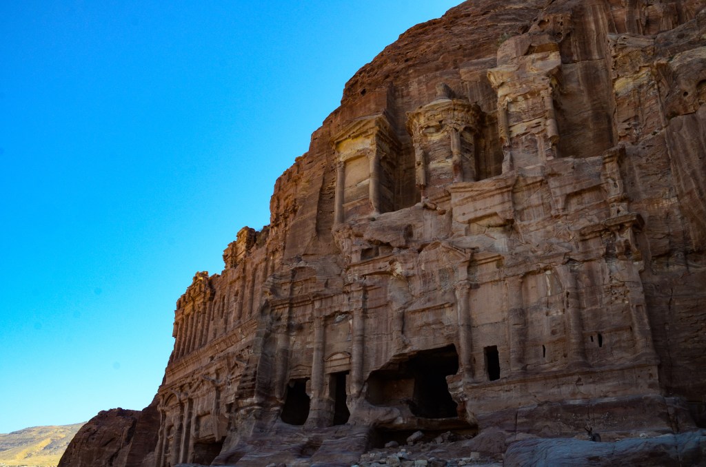 We began our hike on a little path just off of the Street of Facades, which took us right up to the Royal Tombs. There’s a lot to see here, but the best are the Palace and Corinthian tombs to the far left side, and the magnificent Urn Tomb higher up on the hill. Although they’re not as famous as the Treasury or Monastery, they felt older and more mysterious — even a little spooky. Unlike other structures in Petra, they have been exposed to the winds and storms of the desert and are visibly more eroded.