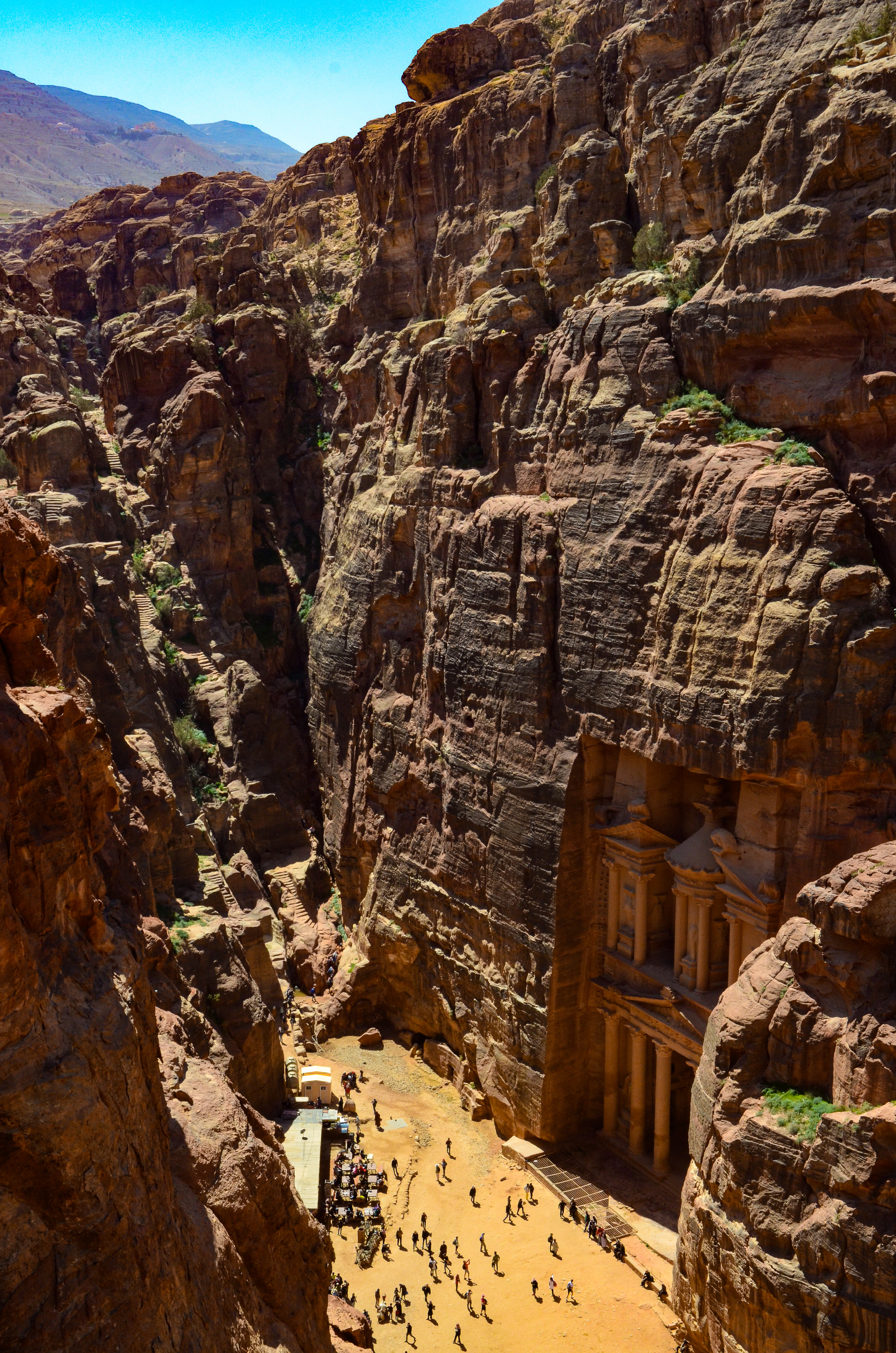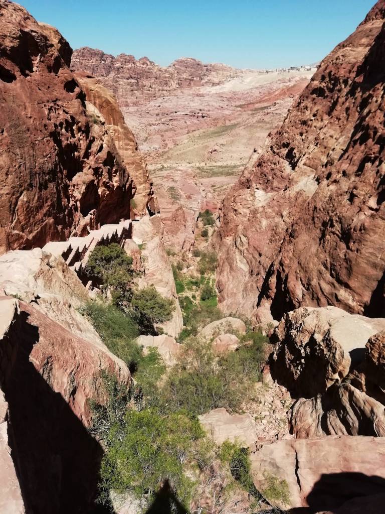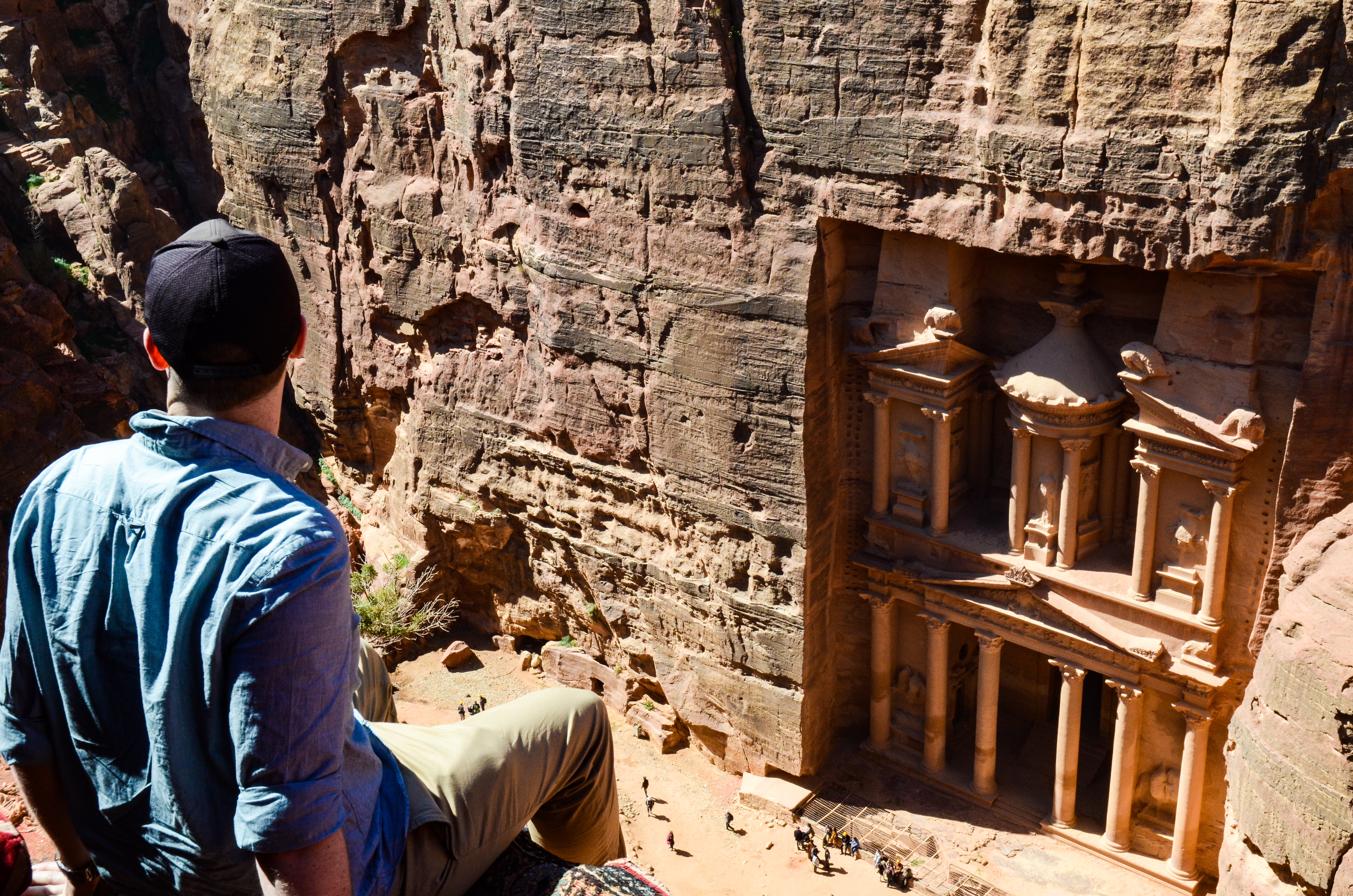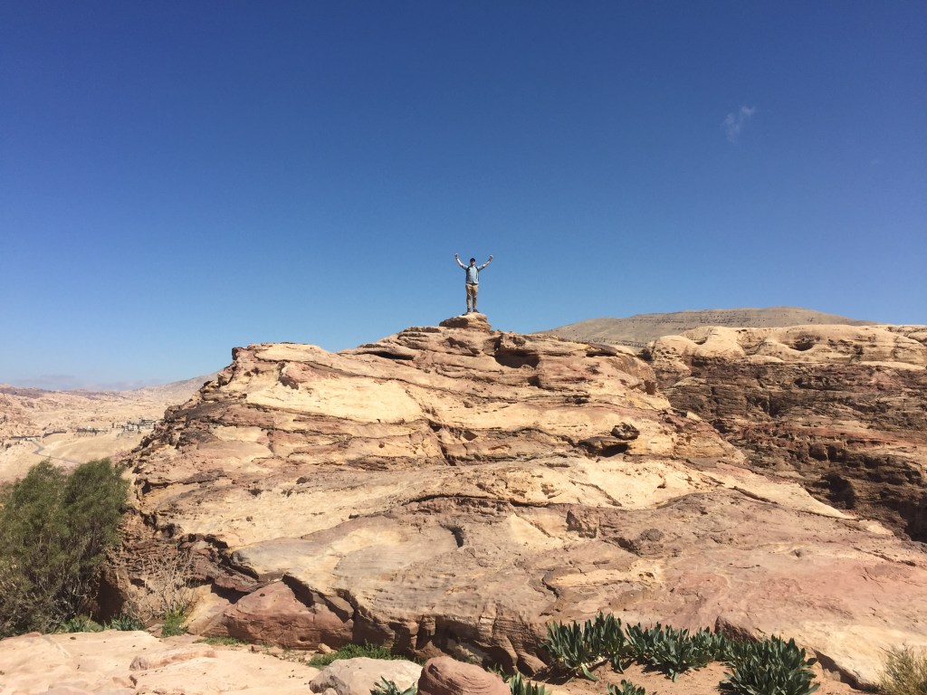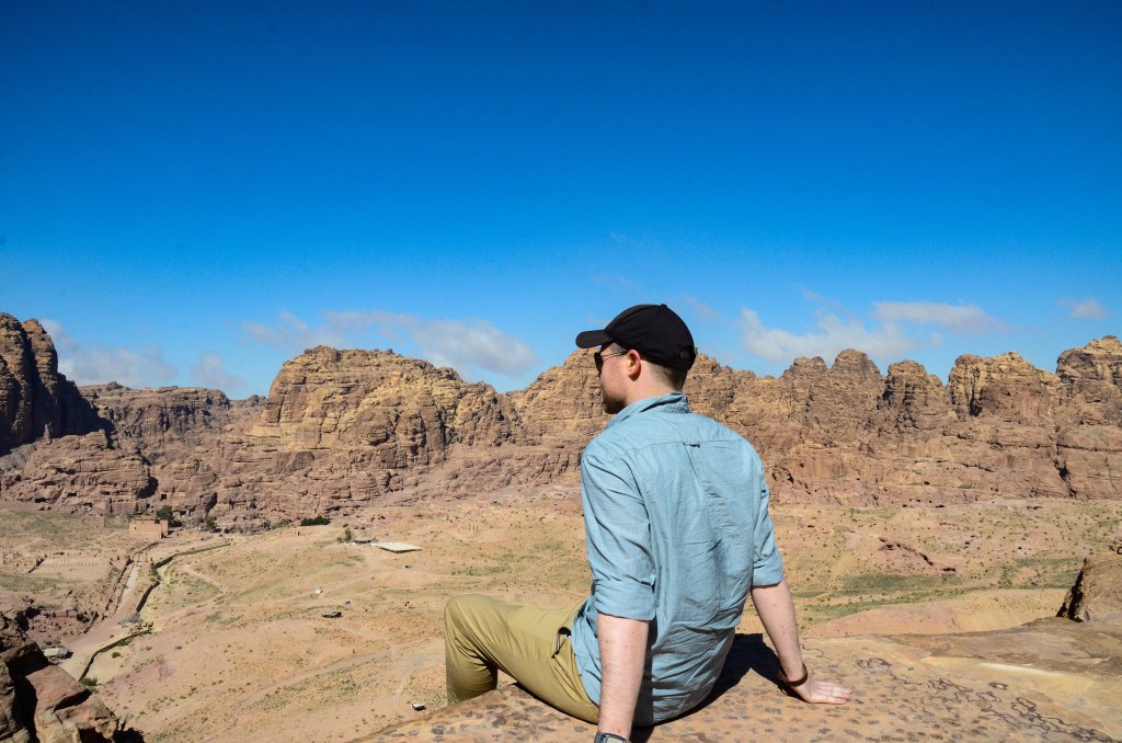 We stood at the top of the world. The land ran away from us for miles, stopping only to dive into a deep blue horizon. The sun felt close, almost too close, and though we were burning up, we couldn’t tear our eyes away from the scene before us. The rosy pillars of the Treasury and the red canyons of Petra stood far below — with people, camels and donkeys alike all ambling along down one long, curving path.