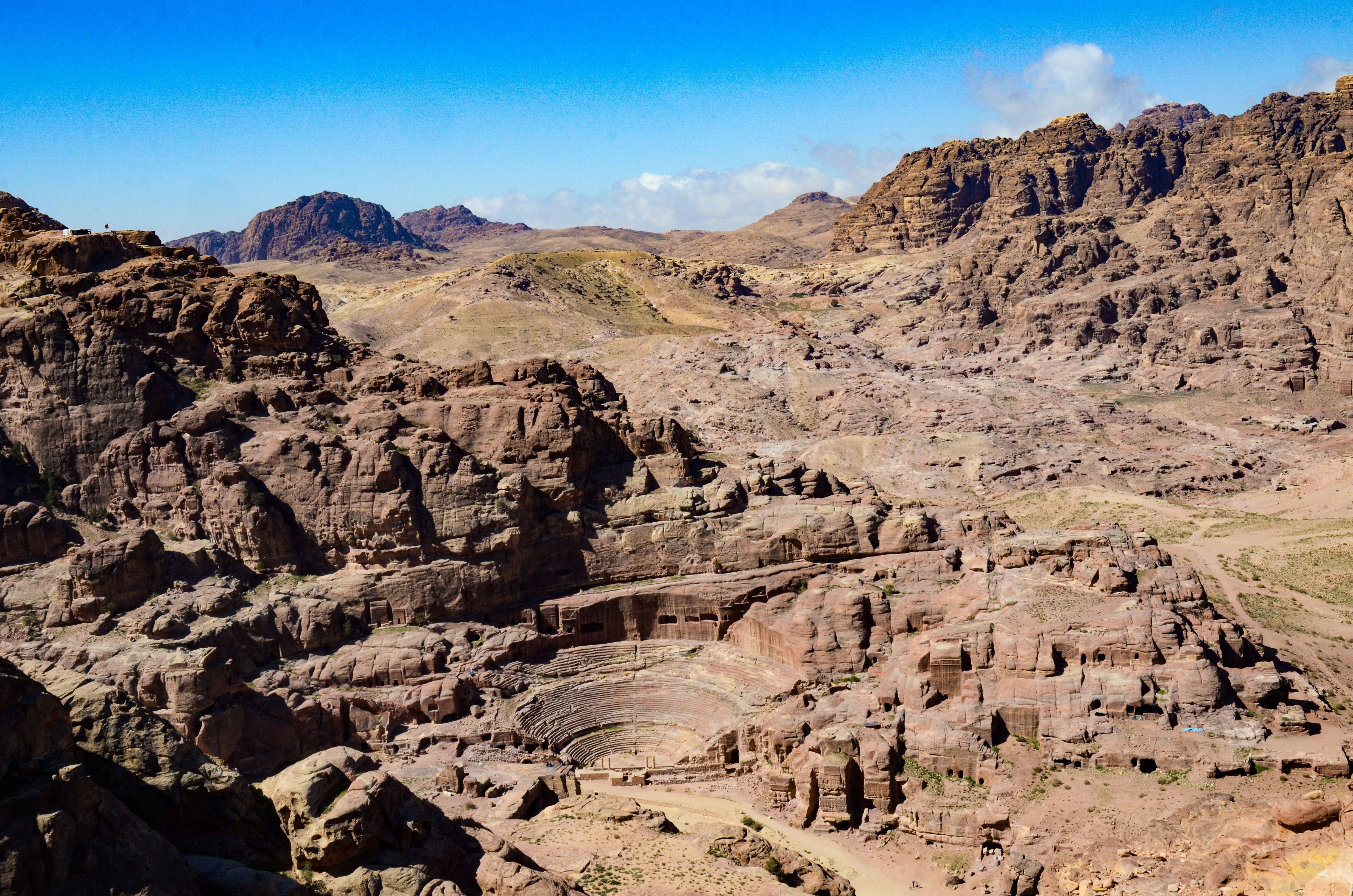 The upwards hike was well worth it — the views at the Al-Khubtha High Place were absolutely stunning. We sat and tried to take it all in for a while, before continuing down our rocky path through the incredible desert. Each step seemed to bring us to an even better viewpoint. Soon we had found the perfect bird’s-eye-view of Petra, with the circular first-century Nabatean Theatre standing out among the rocky landscape.