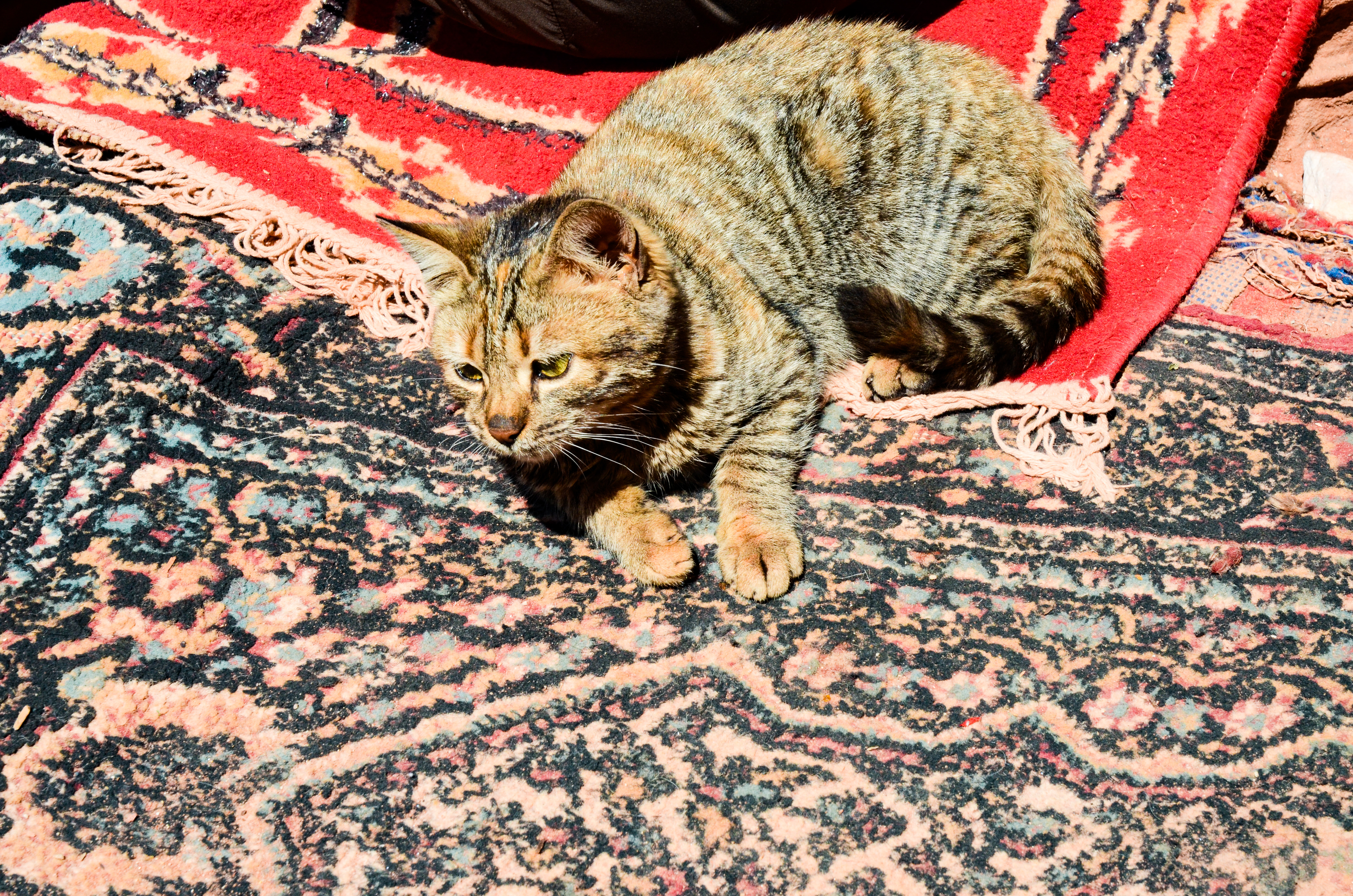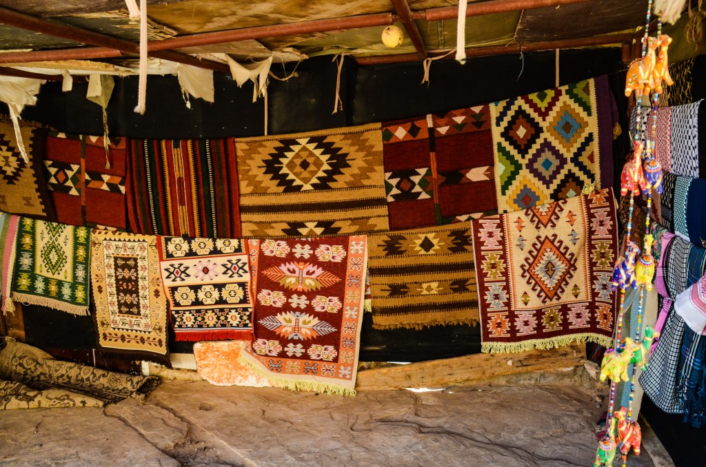 As we walked, we stopped at few of the shop stalls along the main path. In one, I spotted the same type of rug we have at home — a funny sight to see considering I had bought the same ‘traditional, handmade rug’ from an old Hungarian woman in Budapest! The stall seller claimed that these were handmade in Jordan as well…